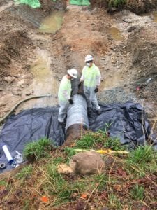 - Once the final grading was complete, the crew installed erosion control blanket on the banks and placed seed and straw to prevent erosion and encourage vegetative growth.